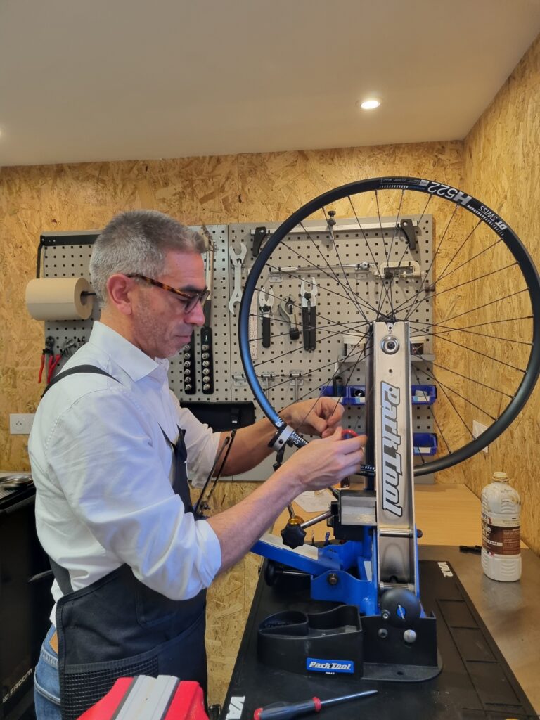 Comment obtenir une roue parfaitement ronde et centrée ? C’est l’art du rayonnage, un savoir faire où se conjuguent patience et méthode.