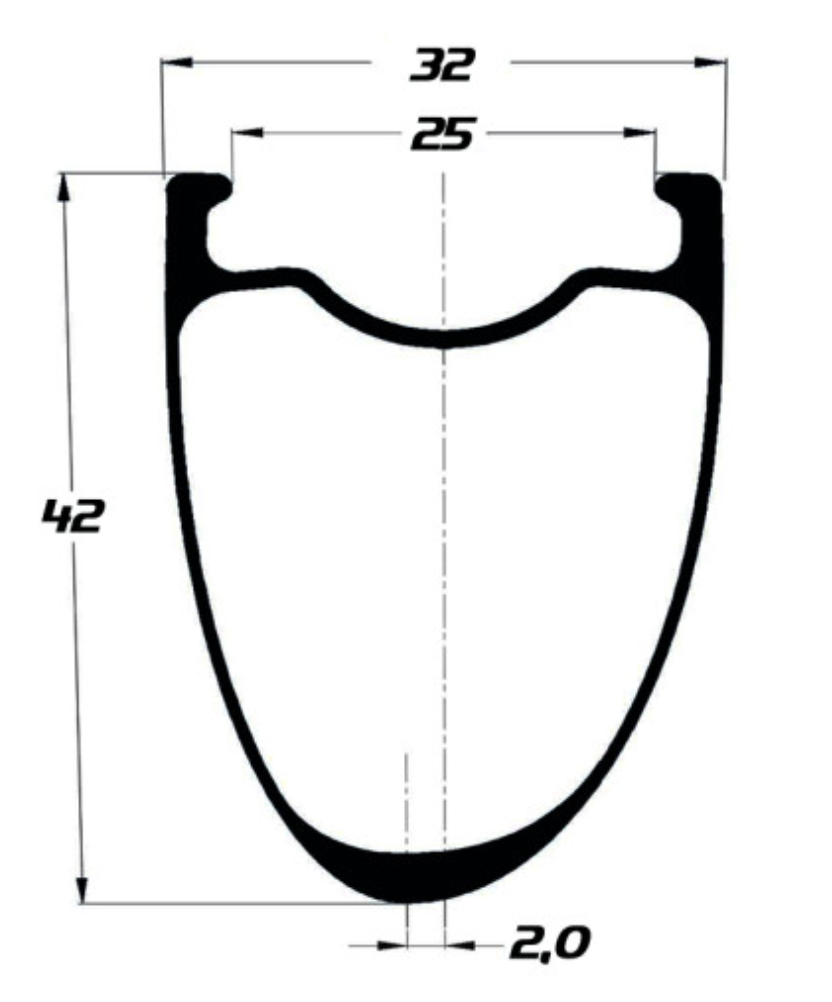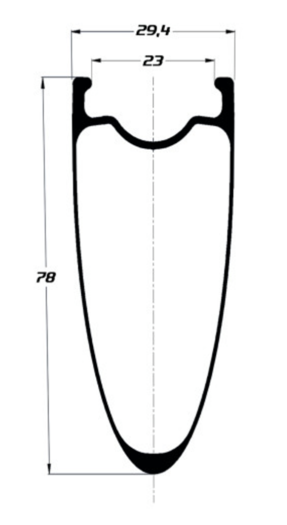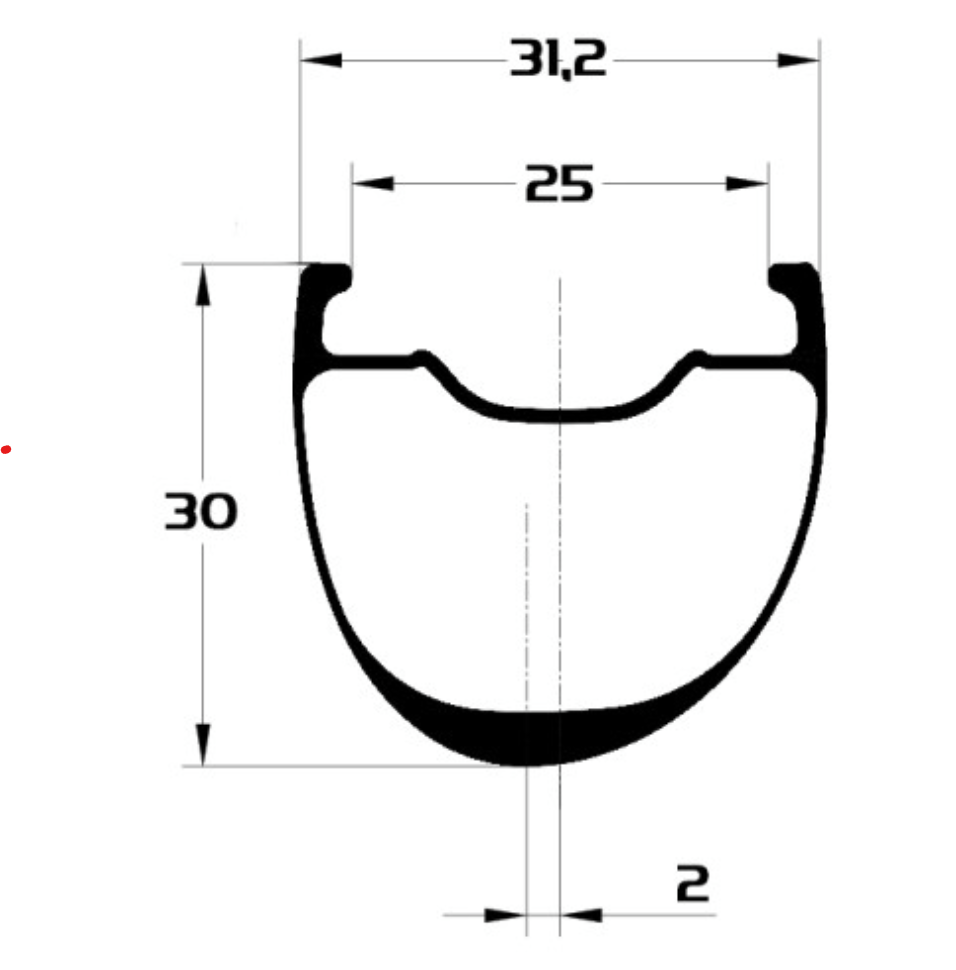 La performance ultime avec ces jantes sans compromis construites avec les fibres de carbone les plus nobles en Toray T1100. Pour les chasseurs de performances pour qui chaque gramme compte. Ces roues offrent un comportement inégalé fait d’explosivité, de contrôle et de confort. Les jantes sont disponibles en 5 hauteurs de 30 mm pour la montagne à 56 mm pour le Triathlon ou CLM. Toutes les jantes sont en 25 mm de largeur interne, idéales pour pneus de 28 à 30 mm. Ci-dessous le profil de la jante montagne en 30 mm de hauteur.